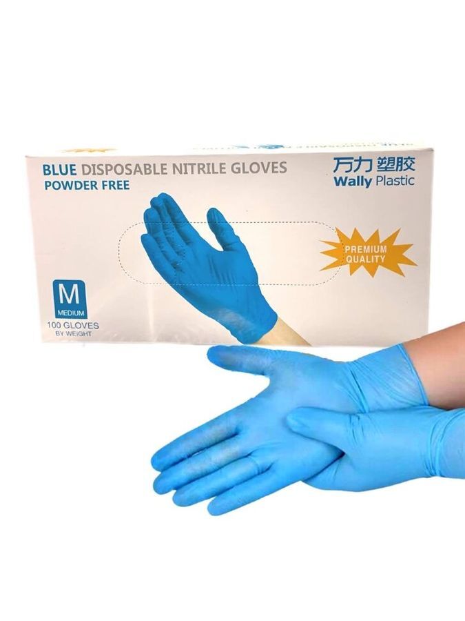 перчатки нитровиниловые голубые M