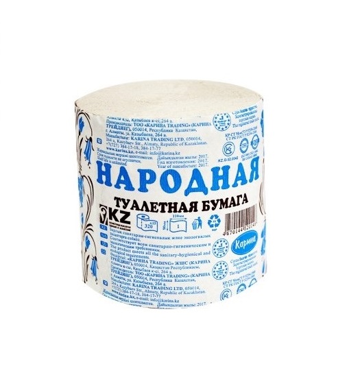 Однослойная, естественного цвета, плотной намотки, без втулки, состав: 100% макулатура, в обертке. Упаковка: В полиэтиленовом пакете 24 рулона.